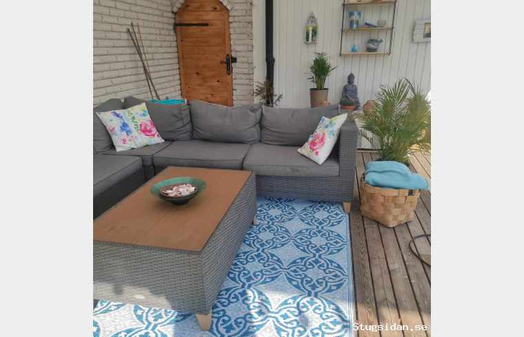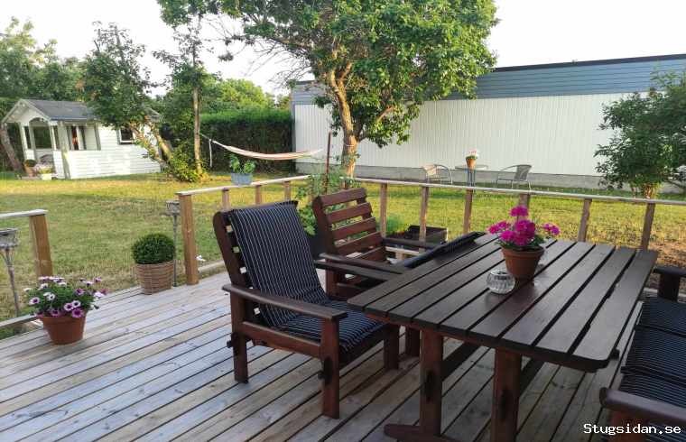 Visby. Insynsskyddad trevlig trädgård där man kan sitta ute vid bord både i