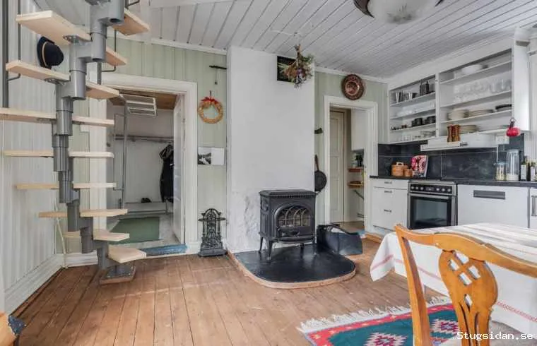 I köket finns en mysig kamin som går att trivselelda i.
