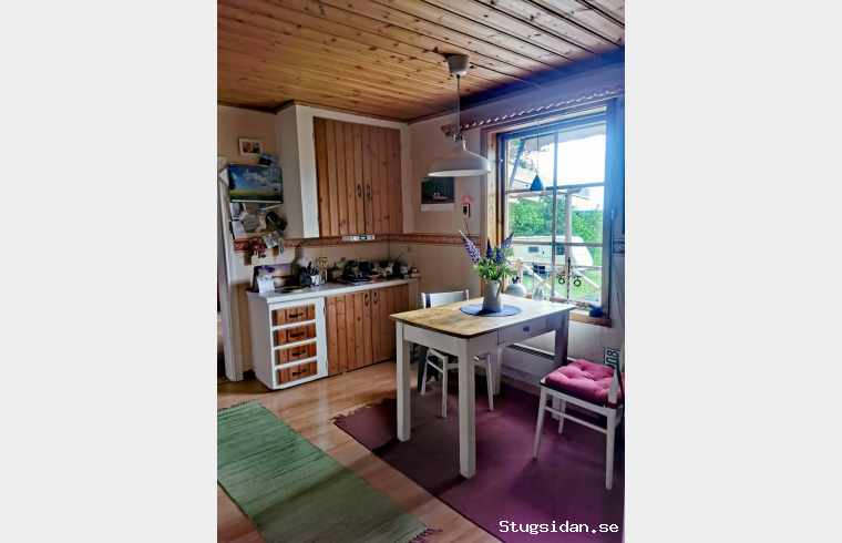 en rymlig entré, kök och v-rum med vedkamin, ett sovrum