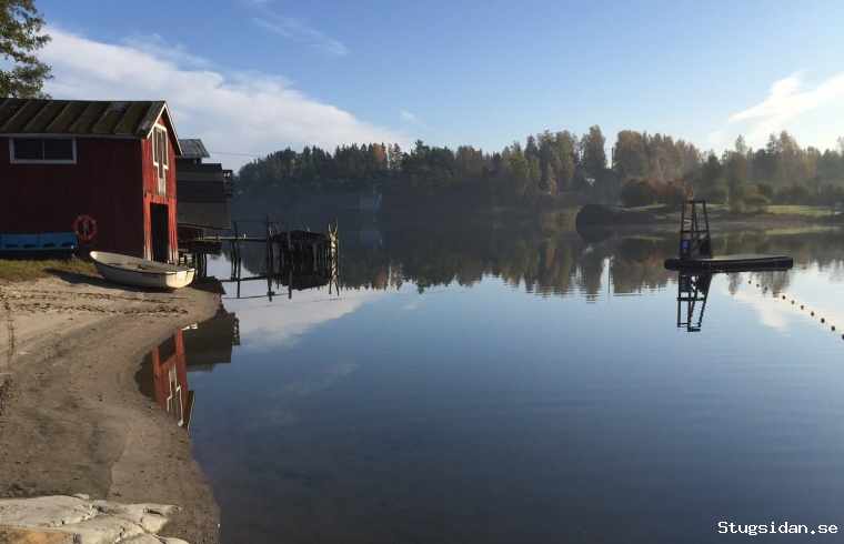 Stranden, med roddbåt som ingår, ligger ca 1000