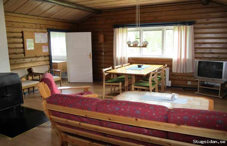 öppen spis och TV. Köket ligger separat och är utrustat för självhushåll