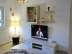 finns ett vardagsrum med satellit-tv, badrum med dusch