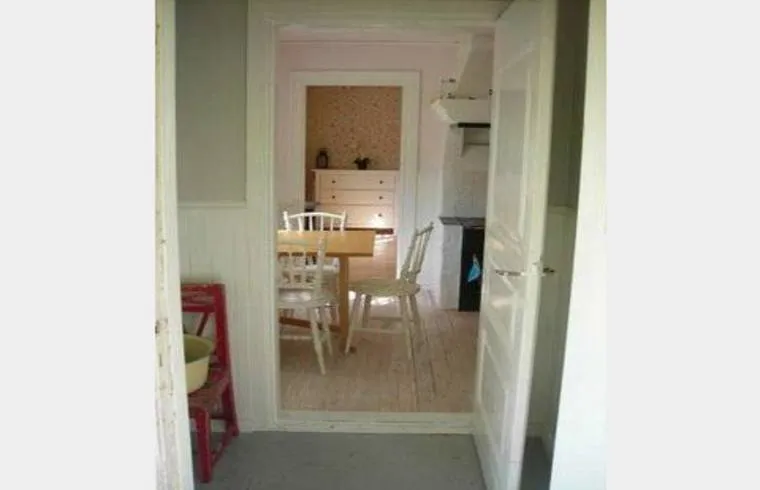 Torpet har en enklare standard med utedass. Uppvärmd med el och vedspis. Kall-