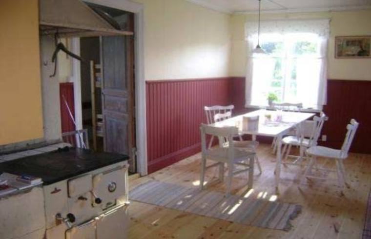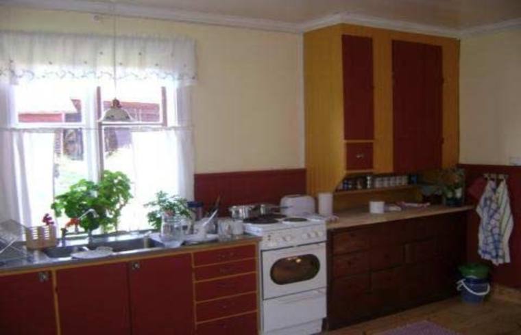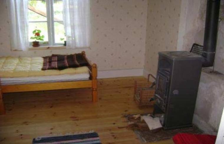 två rum och kök. Vedspis finns i köket och kamin i det ena sovrummet.