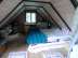 Vardagsrummet har en öppen spis. Loftet som är sovrummet finns en