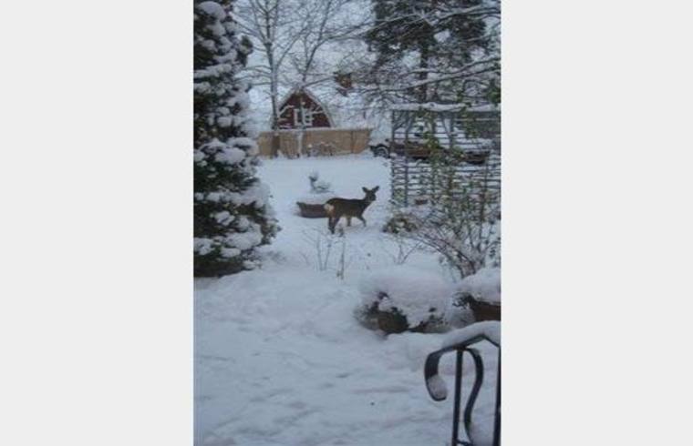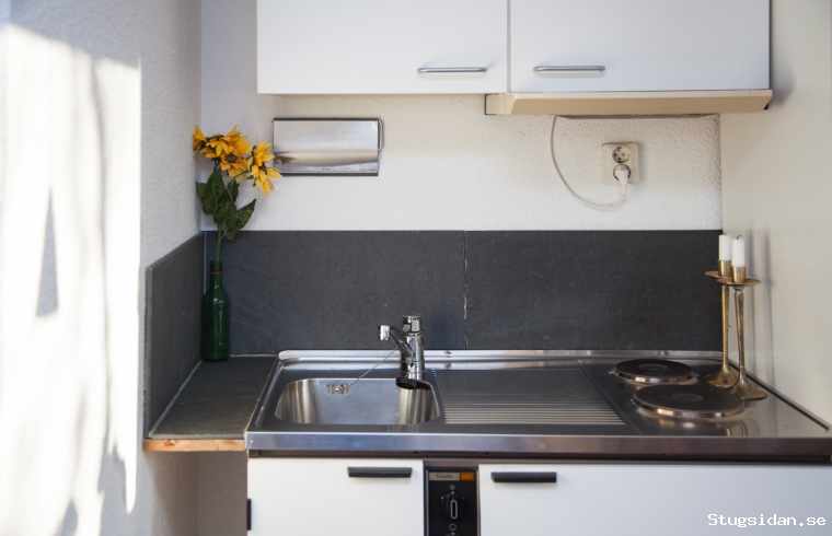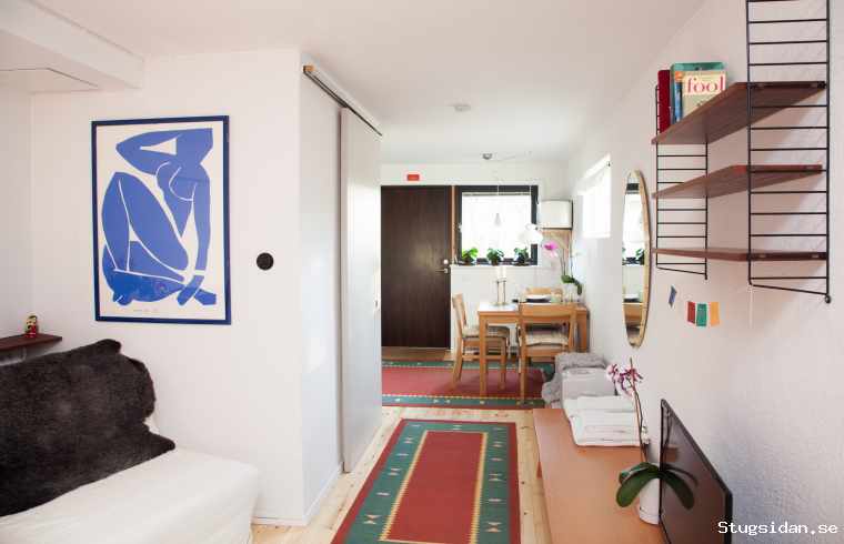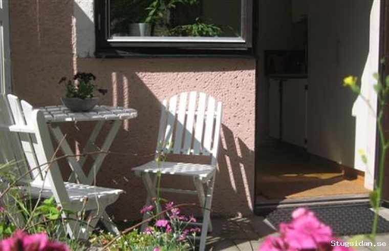 Den lilla lägenheten har egen ingång med liten uteplats.