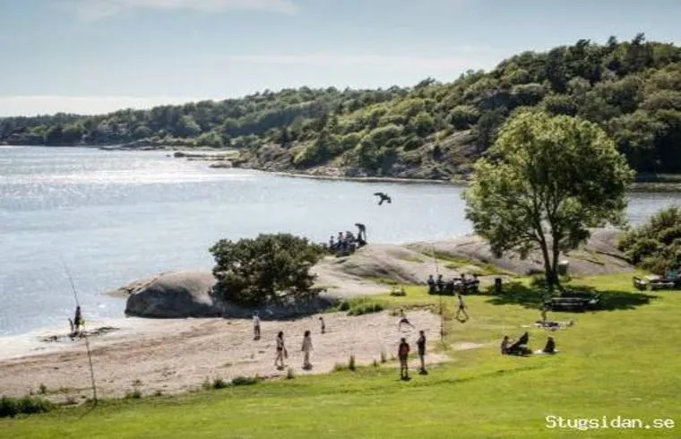 Utanför finns trädgård med utemöbler och grill. Badplats, restaurang,