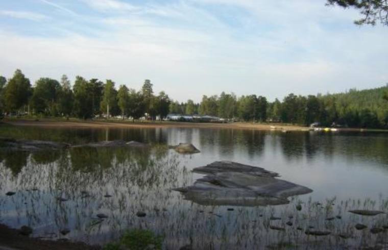 Charmig stuga vid härlig badsjö