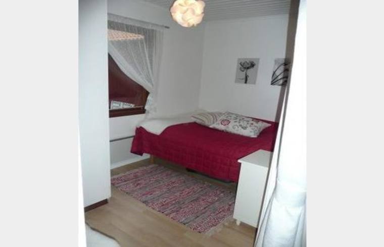 och det andra med en 120 cm säng. För övrigt så finns ett stort allrum med