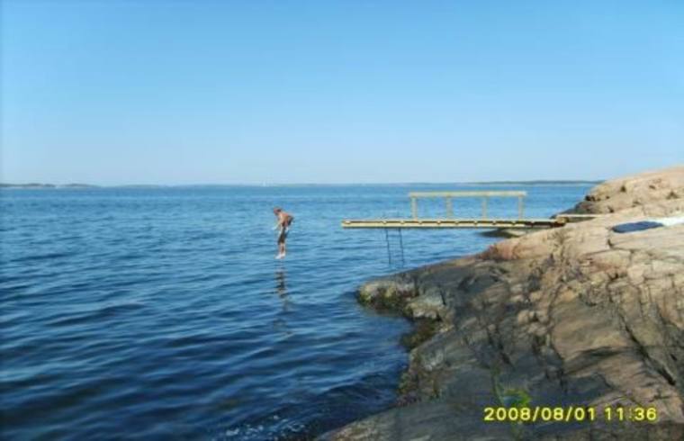 C:a 100 m till barnvänlig privat strand samt vedeldad finsk bastu (Gratis)