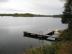 Vacker stor lyxstuga med båt, kanot.
