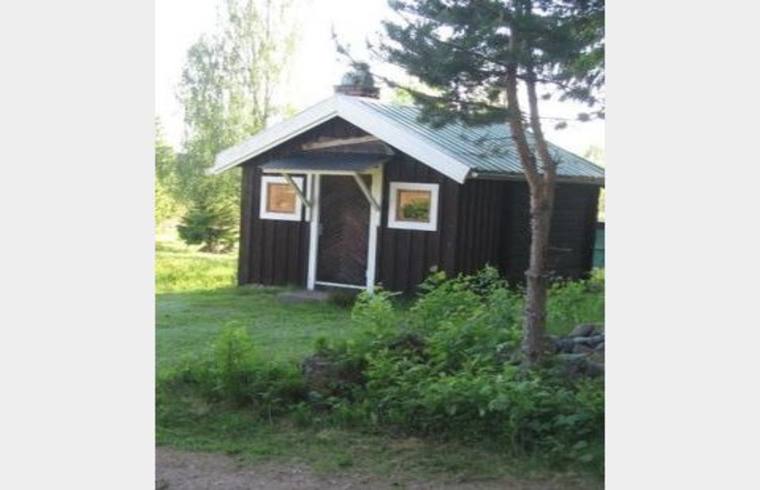 Timmerstuga med trägolv och öppen spis. Gasolplattor och tillgång till