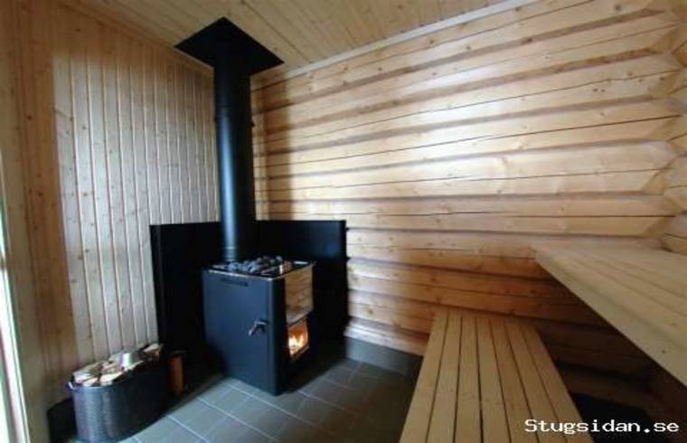 I en timmerbyggnad vid strandkanten finns en vedeldad bastu, en enkel (camping)