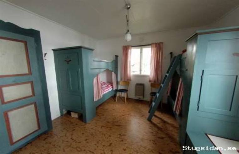 Sovrummet har två våningssängar i gammaldags dalastil med sammanlagt fyra