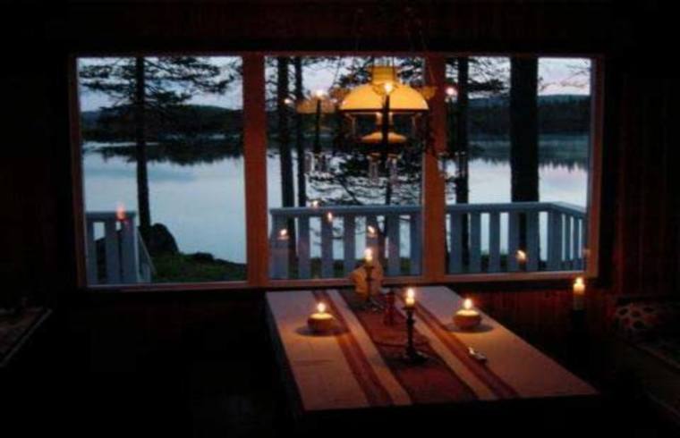 Stugan är charmigt primitiv - det saknas elström. Belysning från stearinljus och
