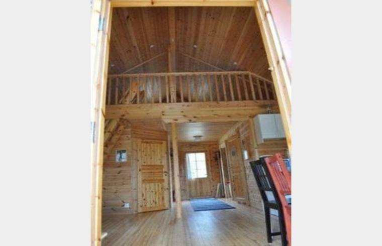 Övre plan: loft (12m2) med två sovplatser och skrivbord.