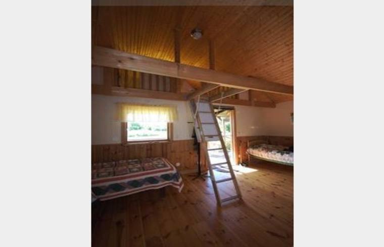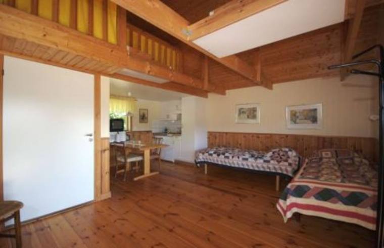med stor wc och dusch. Det finns 7 bäddar varav 4 bäddar på sovloft. Kök,