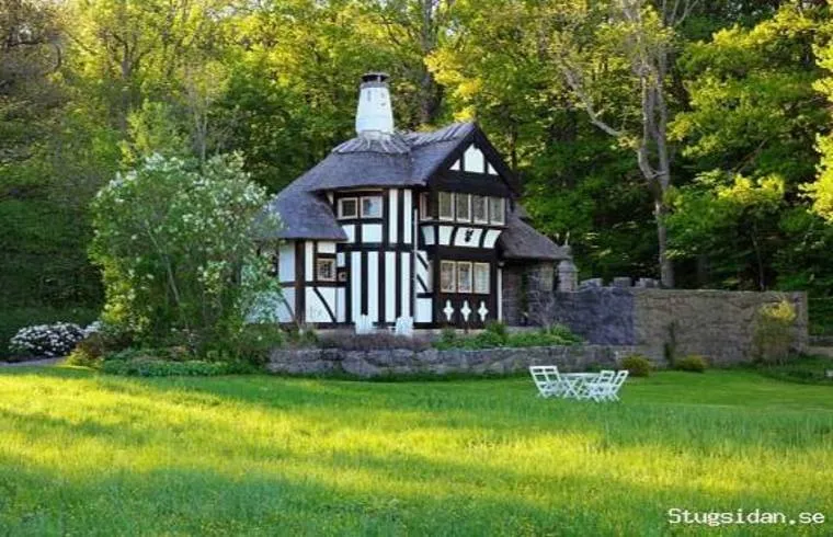 inbäddad i bokskogen. Stugan är inredd i sekelskiftesstil med ett