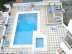 swimming pool and a small leisure area with sub-tropical plants and a lawn.