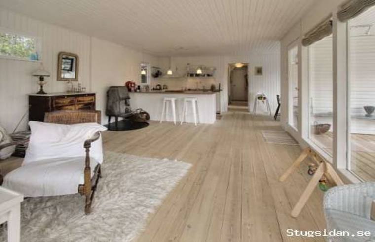 barneseng), lyst brusebadeværelse med vaskemaskine, stor stue med åbent køkken