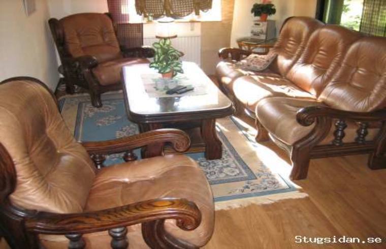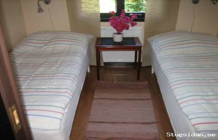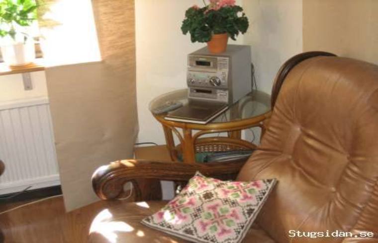 Har 2 sovrum med 2 sängar på golvet i varje rum,vardagsrum med soffgrupp och Tv.