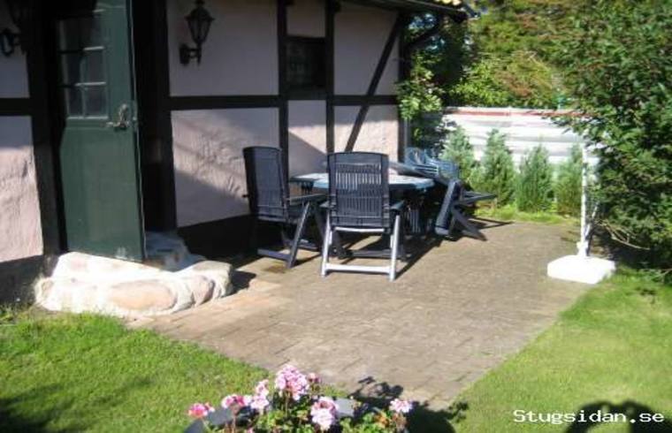 Uteplats med möbler.