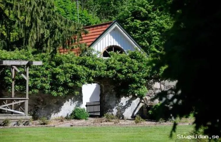 dusch, vardagsrum och sovrum. Huset ligger gemytligt i ett skogsbryn med lugn