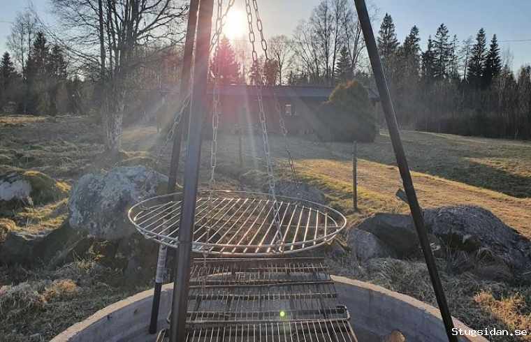 utomhus finns grill, egen gräsmatta, vandringsleder inpå knuten.