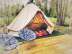 Glampingtälten ligger vid bäcken som porlar sakta förbi.