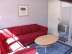 med 2 våningssängar, kök med diskmaskin, kyl och frys, vardagsrum med soffa, tv.