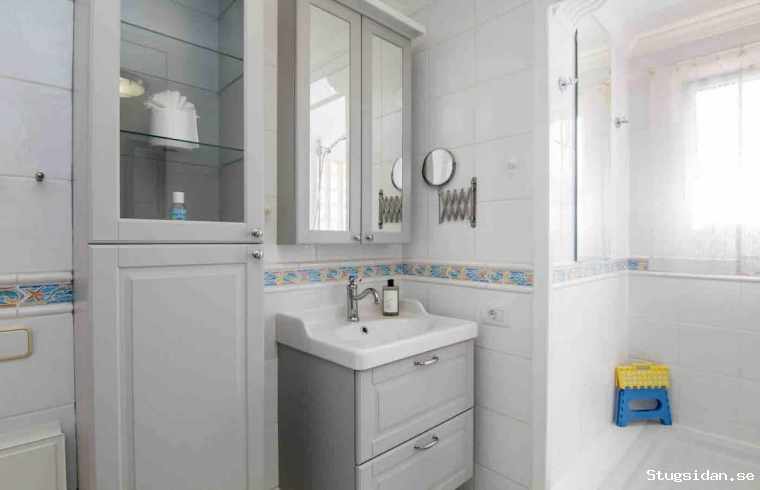 Två dubbelsovrum med 160-breda bra sängar.Rymlig och ljus dusch/wc/bidè .