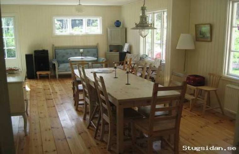 1. etg.: Stue med peis, stor spisestue med plass til 15-20 personer ved