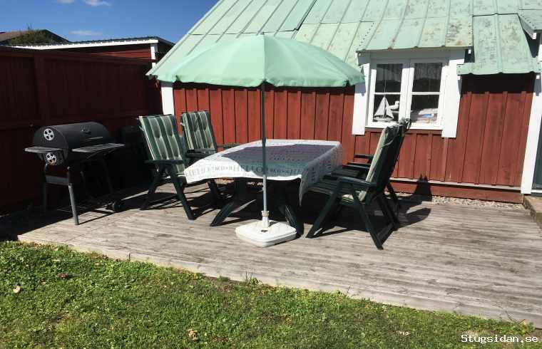 Egen infart med parkering och uteplats (utemöbler + grill), parasoll.