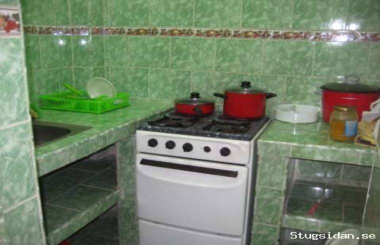dubbelsäng, ett fullt utrustat kök och ett badrum med varm dusch. Alla rum är