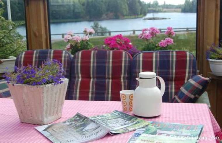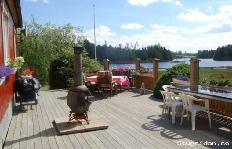 terrasse i syd med utsikt over vannet, Töck, en del av Dalslands kanal.