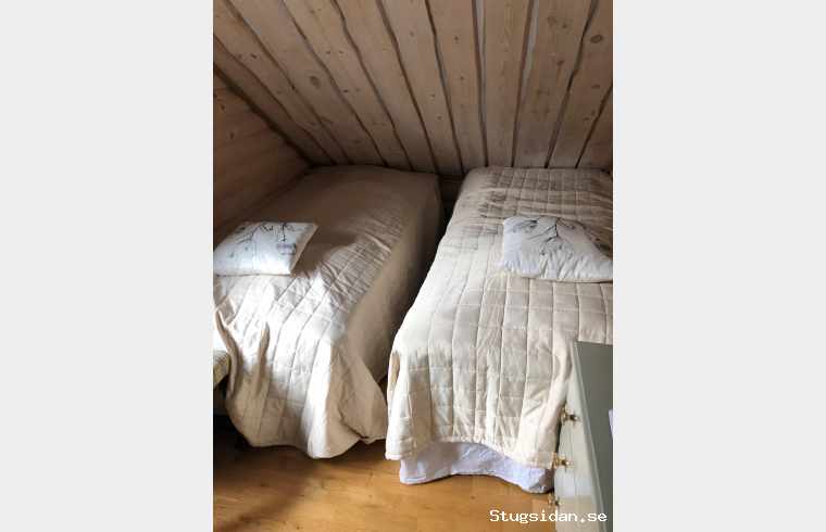 Sovrum med två 90 cm sängar och en dubbelsäng.