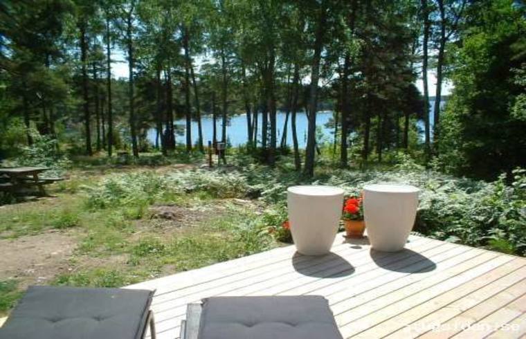 Sjönära med viss sjöutsikt. Stort altandäck i