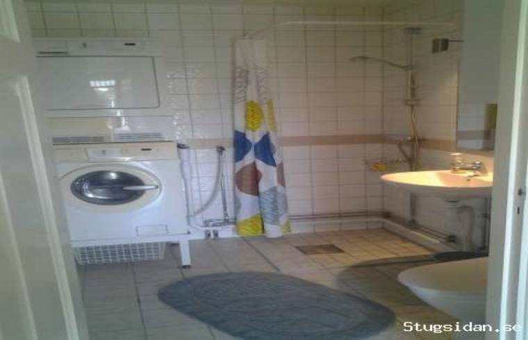är placerad i köket, (Barnresesäng + stol finns att låna), dusch och