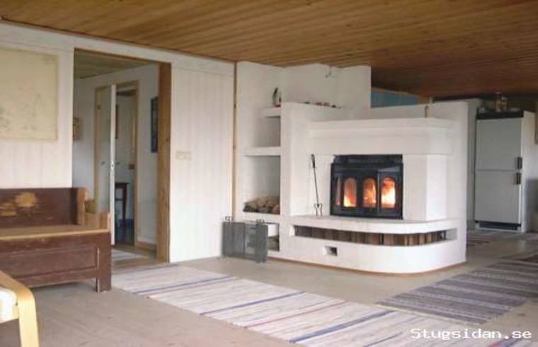 och öppen spis med braskassett. Välutrustat kök med diskmaskin och micro. WC