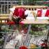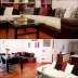 Large terrace in greenery, dining table + large bamboo furniture, awning,